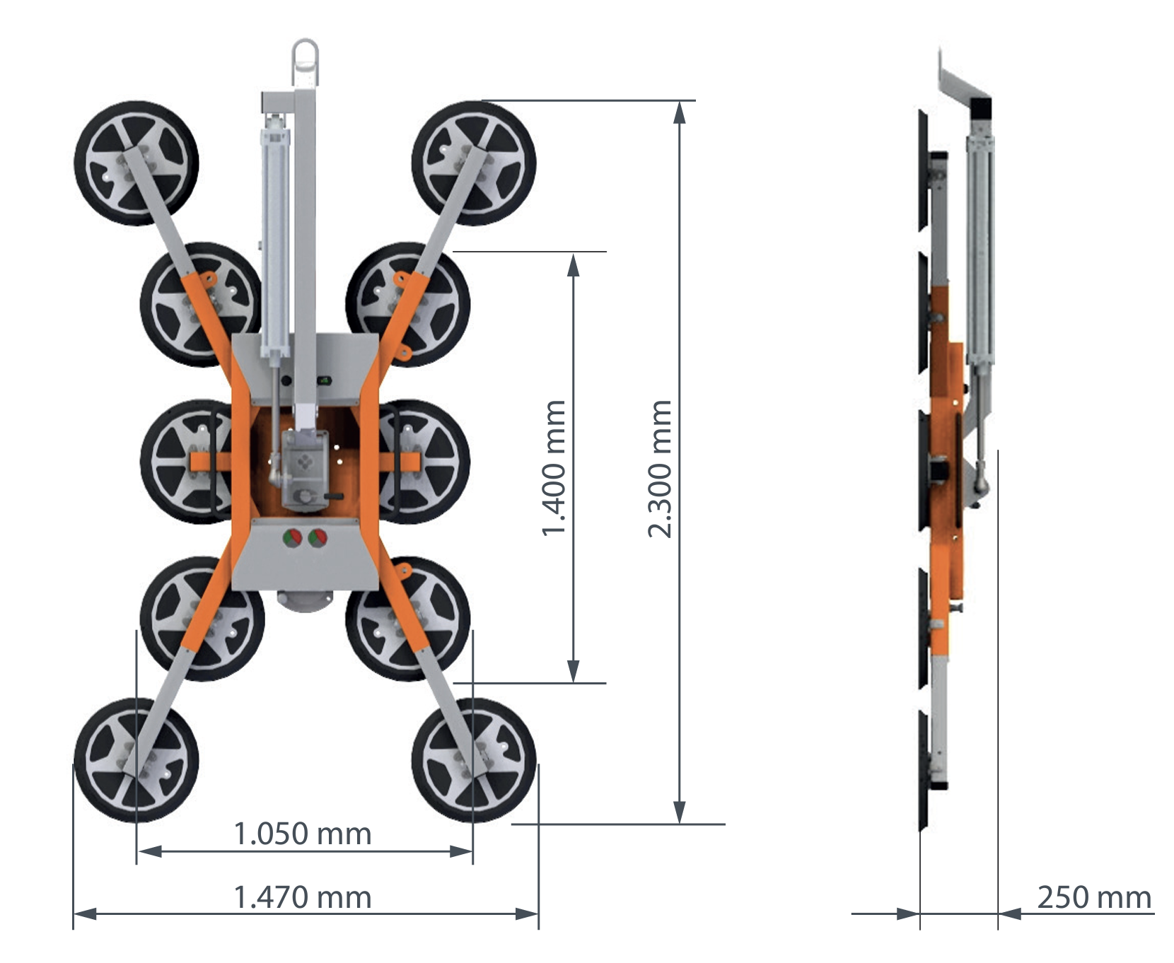 10 suction pads ∅ 400 mm: up to 1000 kg (flat glass panes)