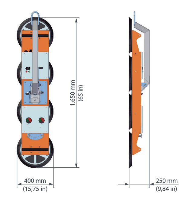 Discover the unmatched efficiency of OKTOPUS GL-LN 400 for handling long, narrow, and rectangular glass panes with ease. Ideal for facades, these vacuum lifters offer seamless glass maneuvering, 360° rotation, and 90° tilt for flexible installation. Ergonomic controls ensure comfortable load positioning, powered by a 24 V DC battery. Optional blow-off functionality and advanced safety warnings enhance productivity and safety. Even during power loss, suction pads maintain vacuum for at least 5 minutes, ensuring secure load lowering. Elevate your operations with Lincer’s innovative vacuum lifters.
