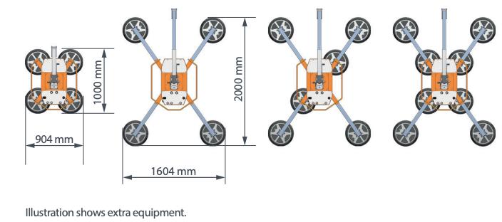 • Suction pads: 4 / 6 / 8 pcs. Wirth Ø 400 mm respectively 14 pcs. Wirth Ø 200 mm