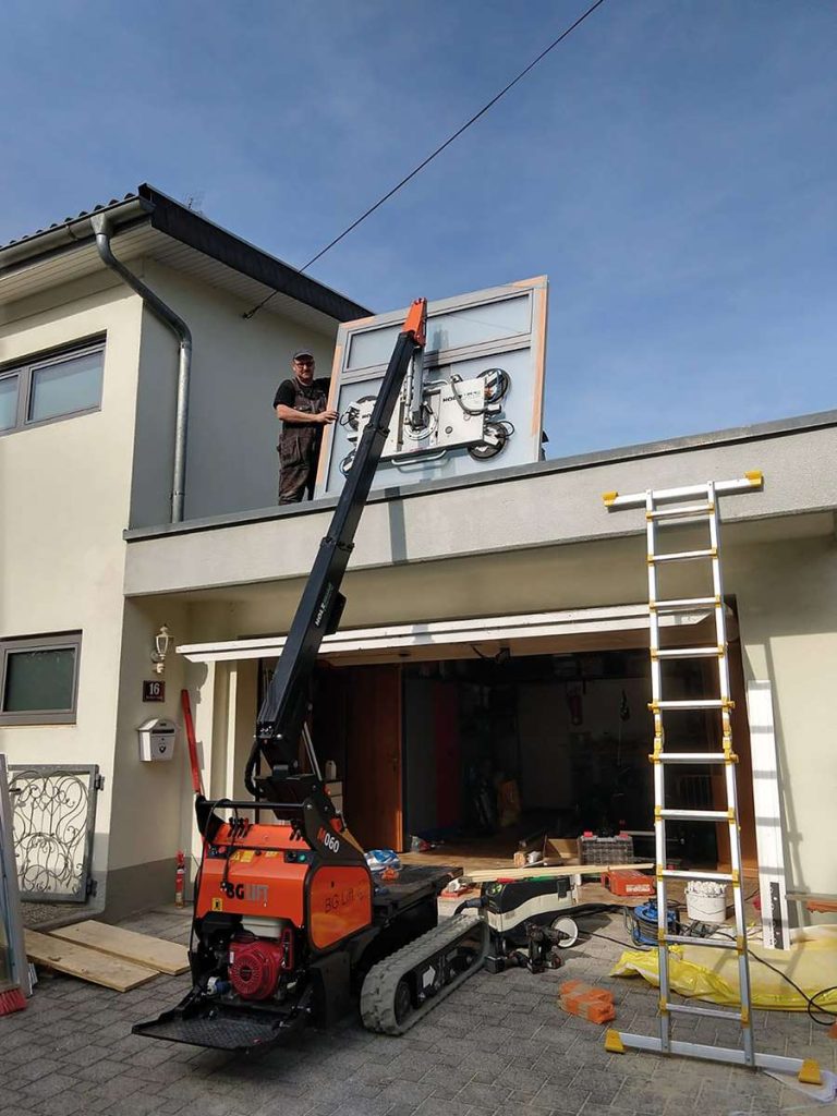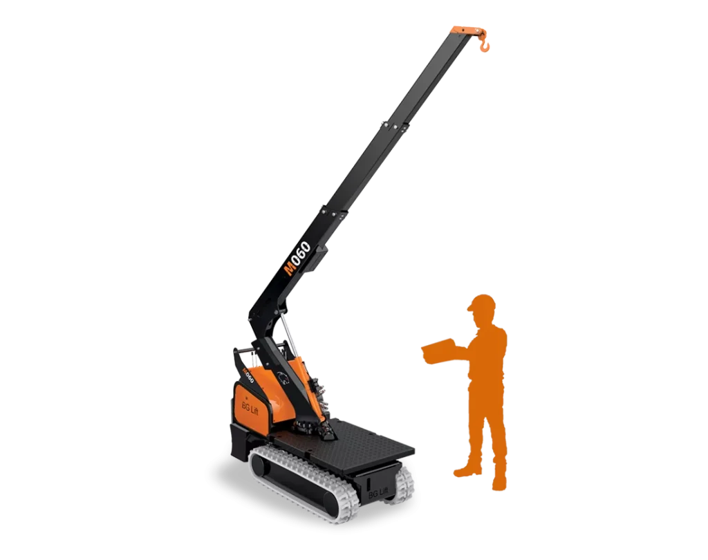 The “Pick and Carry” mini crane provided with (50°) rotation.Extremely compact and ergonomic. Designed by BG LIFT Team to confer agility, robustness and to be used in narrow spaces and access.Perfect for indoor and outdoor use.The restrained weight allows the crane to operate on the base floor of upper levels, totally in compliance with the regulations.